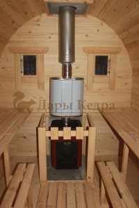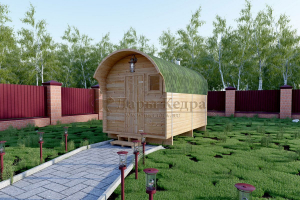 Баня-бочка представляет собой конструкцию в виде бочонка без углов. Такая форма считается оптимальной для равномерного распределения пара по всей внутренней поверхности парной. Таким образом, пар не скапливается в одном месте, а циркулирует по всему объему. Соответственно, круглая (квадратная, овальная) баня экономичная: топится быстро, требует дров мало.