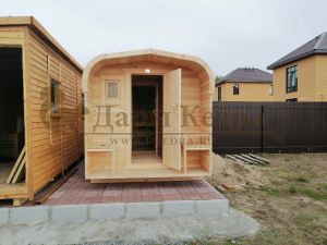 При обустройстве кемпинг-домов и габаритных бань (эксплуатация в качестве летнего домика) обратите внимание на шкаф, он точно вам пригодится для размещения вещей. Внутри - полки и штанга для аккуратного размещения одежды. Высота - 1,8 м, ширина - 0,9 м, глубина - 0,45 м.