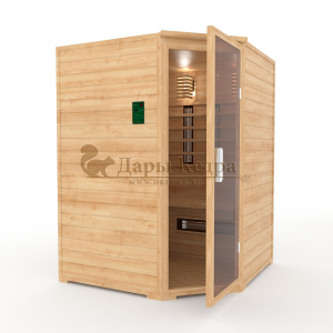 Это специально оборудованная кедровая кабина для прогрева тела человека сухим теплом. Воздух в таких парных не нагревается. Инфракрасные лучи воздействуют на тело, равномерно прогревая мышцы, суставы и органы. Керамические излучатели похожи на лампы, имеют высокую температуру нагрева, поэтому защищены противоожоговыми решетками. Тело человека в таких саунах нагревается интенсивнее. Работает кабина за счет электричества. Установка сауны в угол, позволяет рационально использовать пространство помещения. Подходит как для домашнего использования, так и для коммерции.