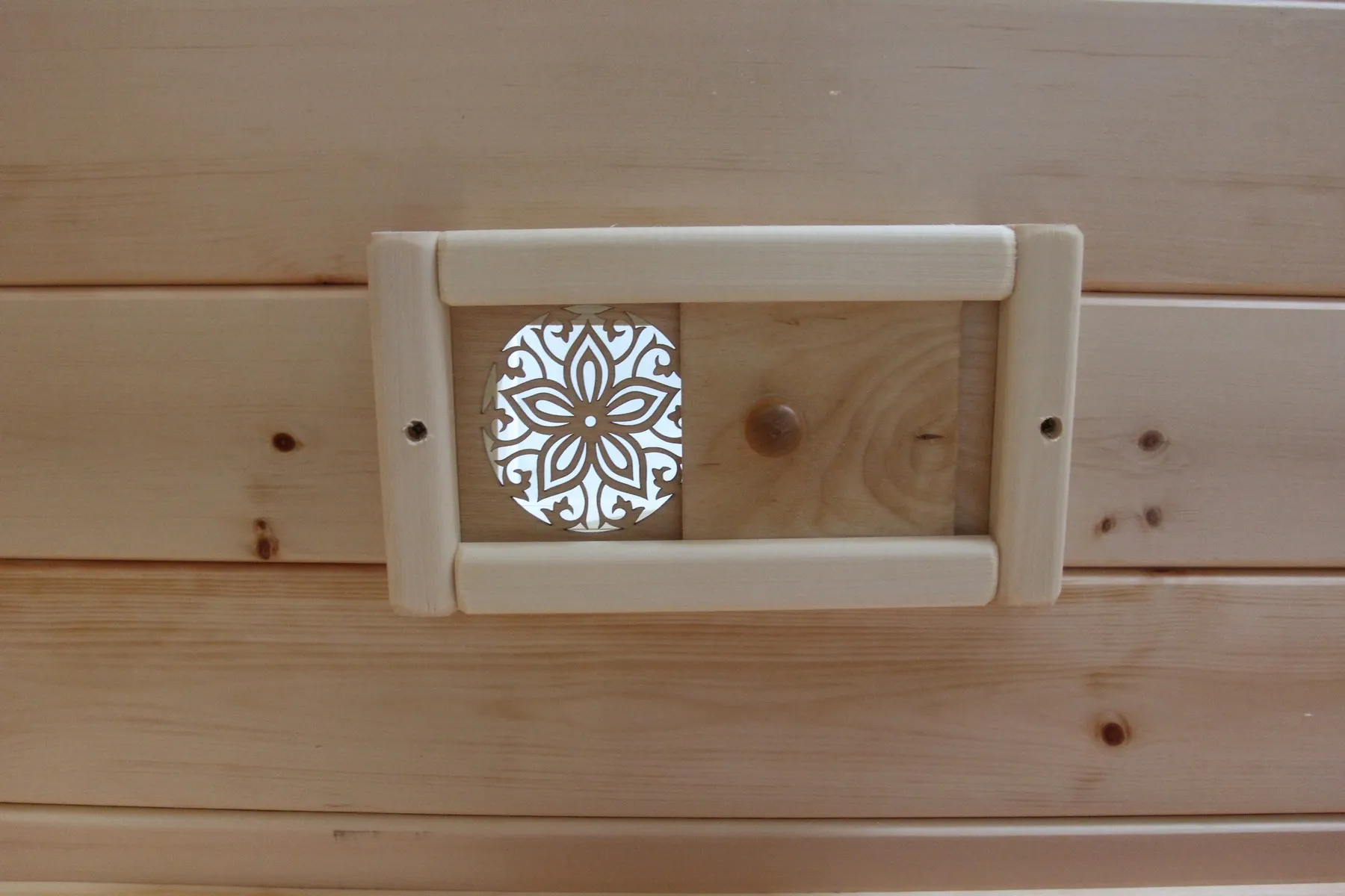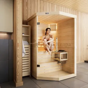 Это специально оборудованная готовая деревянная кабина для сухого и влажного парения. Электропечь нагревает пространство внутри и позволяет сбрызгивать камни водой, слегка увлажняя воздух. Такая процедура позволяет избежать перегрева. Каркас сауны выполнен из массива кедра, снаружи и внутри обшит липовой вагонкой сорта «Экстра» и имеет теплоизоляционный слой. Также двухуровневый полок идёт из кедра для обогащения внутри кабины полезными фитонцидами, а в сочетании с противовирусными свойствами липы сауна становится настоящим источником здоровья.