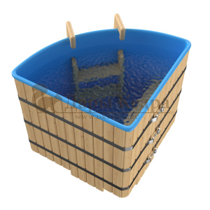 Особенность этой модели заключается в сборке купели по технологии лунный-паз. Паз (углубление) одной доски прочно соединяется с выемкой следующей. Такая сборка осуществляется без клея и гвоздей. Готовая конструкция прочно фиксируется нержавеющими обручами. Пластиковая вставка придает изделию красивый внешний вид, увеличивает срок службы и облегчает уход за купелью. Для удобства пользования купель оснащена лавочками, приставной и внутренней лестницей из кедра. Подходит для комнатного и уличного использования.