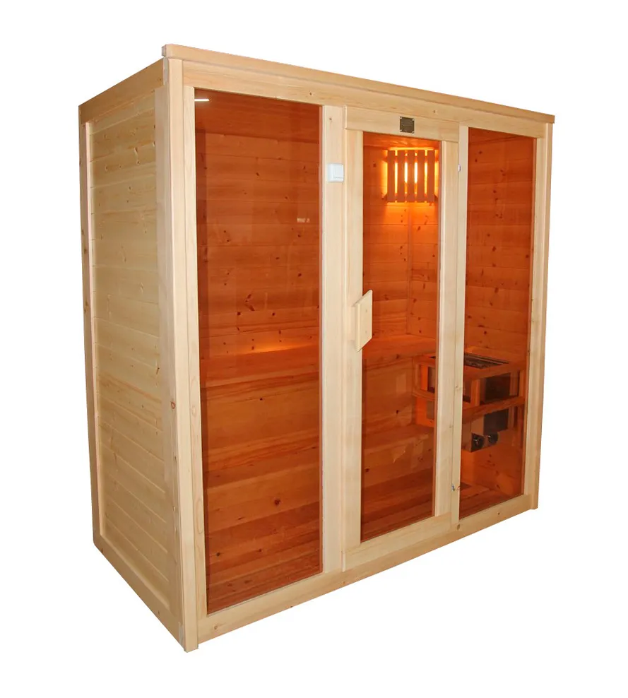 • Трехместная финская сауна кабина из кедра с электрокаменкой Это специально оборудованная готовая деревянная кабина для сухого и влажного парения. Электропечь нагревает пространство внутри и позволяет сбрызгивать камни водой, слегка увлажняя воздух. Такая процедура позволяет избежать перегрева. Сауна обшита снаружи и внутри кедровой вагонкой и имеет теплоизоляционный слой. Финская сауна с электропечью подойдет, как для домашнего использования, так и для коммерции. Доставляется в разборном виде щитами, собирается по инструкции с помощью шуруповёрта. Обращаем Ваше внимание, что в стоимость сауны уже включена дверь с закаленным стеклом в раме из кедра с фиксатором и деревянным фасадом справа. Вы можете заменить фасад на цельностеклянный с безрамной дверью за дополнительную плату. Нагреваясь, древесина кедра выделяет полезные вещества-фитонциды, которые благотворно влияют на организм в целом и укрепляют иммунитет.