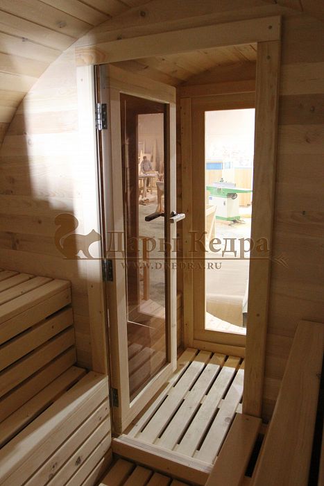 Третьим преимуществом, очень значимым при выборе мобильной парилки в виде бочки, является высокая скорость прогрева (за счет округлости тепло распространяется быстрее), в конструкции нет углов, поэтому внутреннее пространство можно использовать максимально. Можно протопить парную, используя всего 7- 8 поленьев.