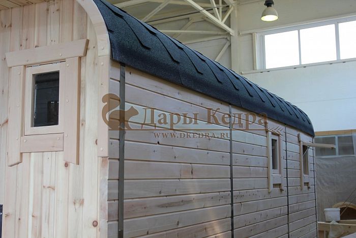 Первое преимущество мобильной кедровой бани перед капитальной. Она достаточно легкая, мобильная и не нуждается в дорогом фундаменте. При желании ее можно переместить с одного места на другое или вообще перевезти, используя манипулятор. Отсутствие капитального фундамента сэкономит приличное количество семейного бюджета.