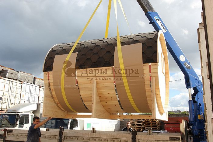 Второе немаловажное преимущество - это быстрая сборка конструкции, если изначально была заказана разборная модель. Каркасную или баню-бочку из кедра в среднем можно собрать за один день трем мужчинам. А если баня была изготовлена и привезена на участок в сборном виде, то после установки на площадку и обжигания печи, на что в среднем уйдет около двух часов, можно сразу начинать готовить ее к банным процедурам.