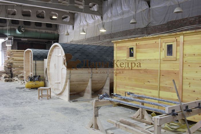 Круглая, квадратная баня-бочка из кедра изготавливается путем набора клепки по кругу со стяжными ремнями. Каркасно-щитовая парилка представляет собой набор щитов, которые складываются между собой в определенной последовательности. В любом случае и та, и другая баня являются облегченными и могут быть установлены на ровною площадку, без строительства капитального фундамента. Главное условие - это хорошая вентиляция дна конструкции. Площадка должна быть выложена тротуарной плиткой или другими материалами, которые обеспечат отсутствие травы, земли. Опоры, на которые устанавливается мобильная парилка, должны быть обработаны пропиткой против гниения и не соприкасаться напрямую с землей и травой, которые затрудняют воздухообмен.